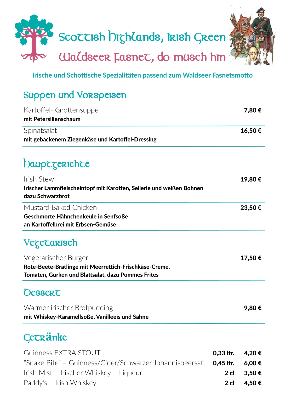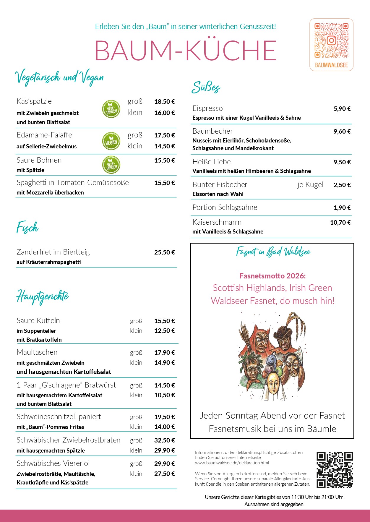 Die Gerichte unserer Fasnetskarte gibt es